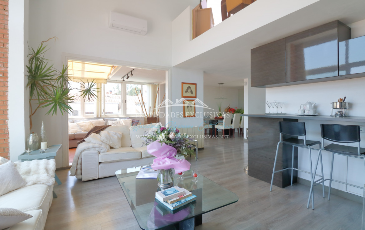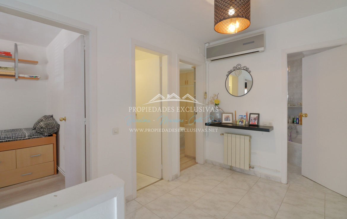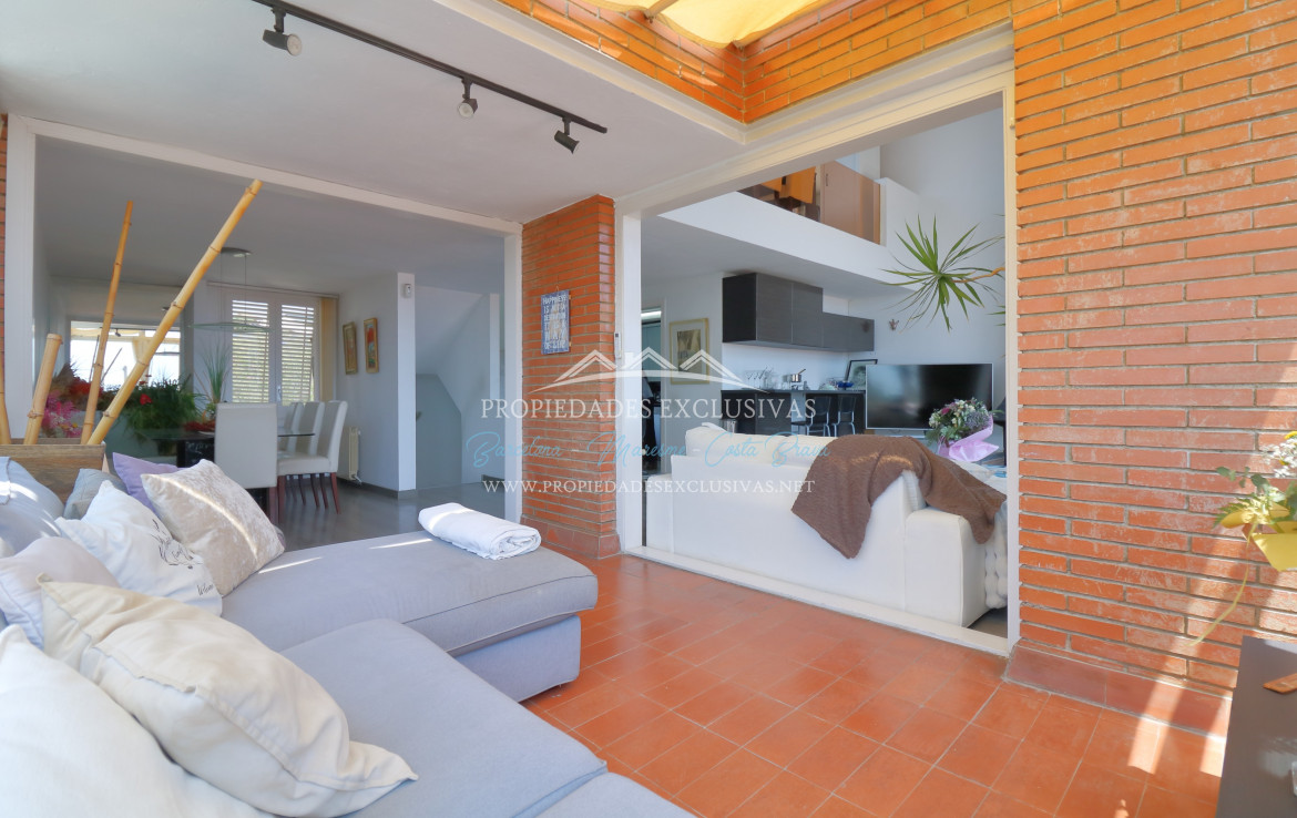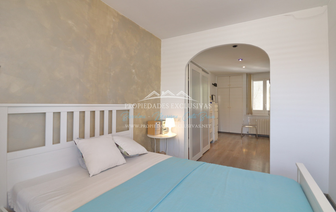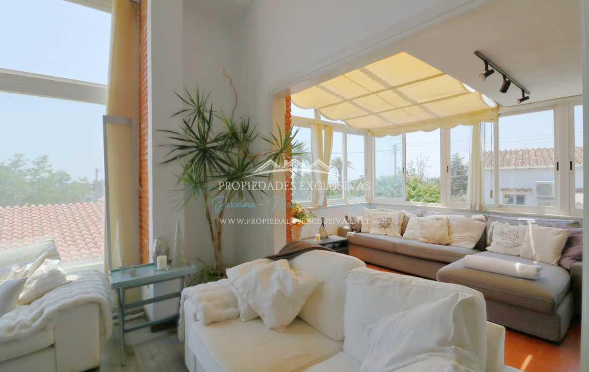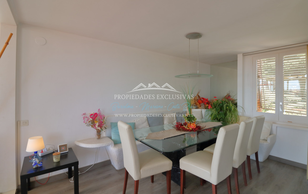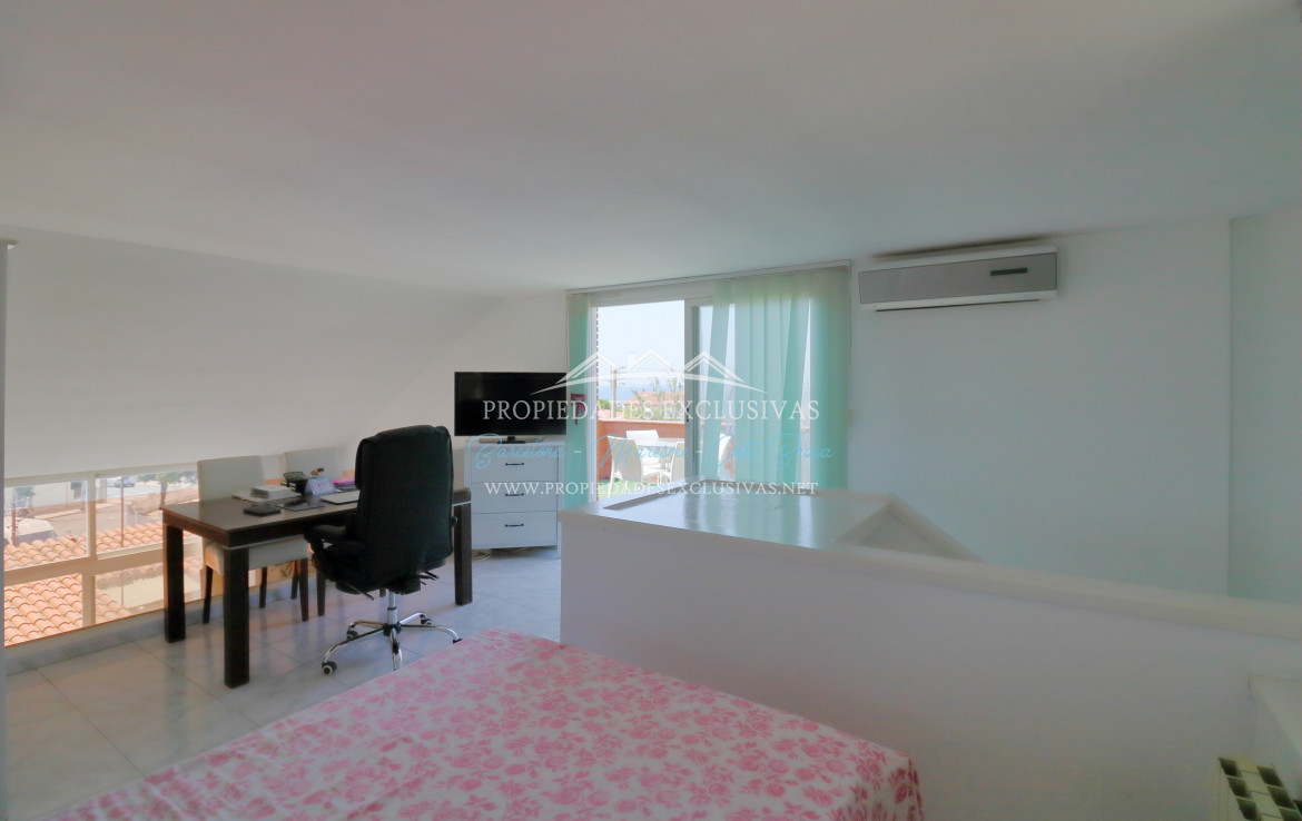 En la planta superior, encontramos un espacio polivalente muy luminoso abierto al salón que actualmente es una habitación/despacho con salida a una amplia terraza con vistas al Mar y Barcelona, perfecto para disfrutar el atardecer.